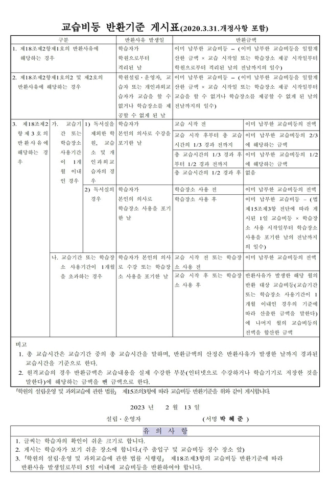 초등 14만 원 / 중등 15만 원